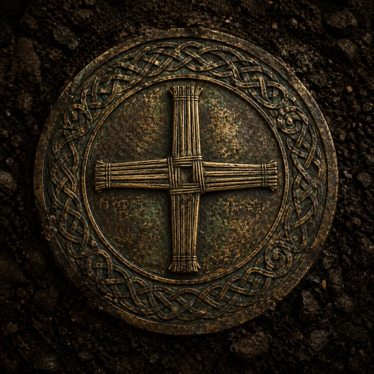 Aus Binsen oder Schilf von Hand geflochten, in einer einzigen Stunde am 1. Februar. Das Brigid-Kreuz ist das ländlichste, lebendigste keltische Symbol — und in Irland heute noch Volksbrauch.