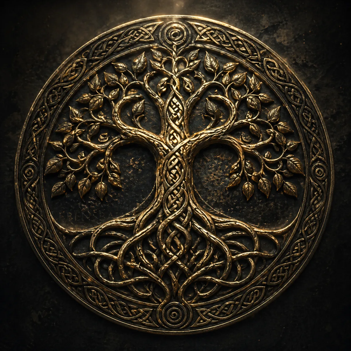 Ein Baum mit ebenso großem Wurzelwerk wie Krone. Für die Kelten kein bloßes Bild, sondern die Mitte ihrer Welt — der Punkt, an dem unten und oben sich treffen.