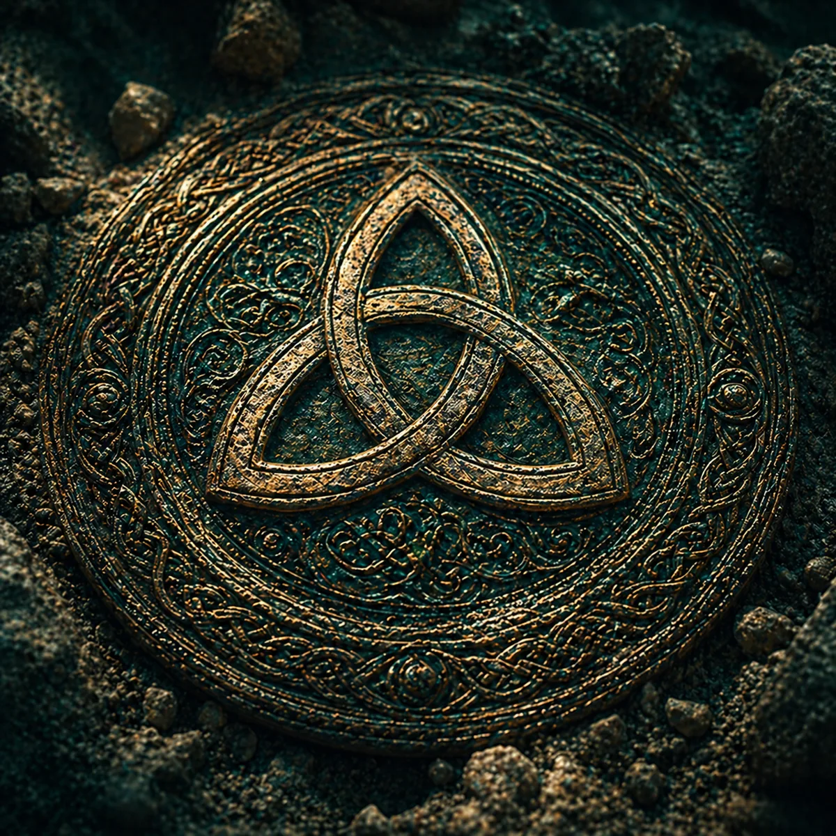Drei spitze Bögen, ineinander verflochten, ohne Anfang oder Ende. Eines der wichtigsten christlich-keltischen Mischsymbole — und älter als das Christentum selbst.