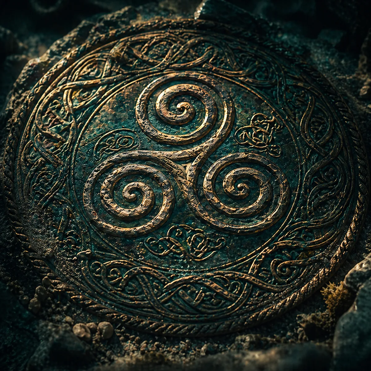 Drei Spiralen, die aus einem gemeinsamen Mittelpunkt kreisen. Das bekannteste keltische Symbol — und eines der ältesten Europas überhaupt.