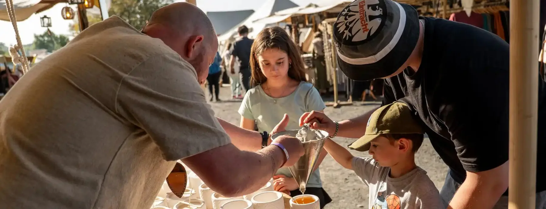 Heute findest du uns beinahe jedes Wochenende auf einem Mittelaltermarkt, einem Wikingertag oder einem Adventsmarkt — quer durch Deutschland und manchmal darüber hinaus. Wir packen den Wagen, fahren los, bauen auf, gießen am Stand, gießen während des Marktes, packen wieder ein und fahren heim. Das ist unser neues Leben.