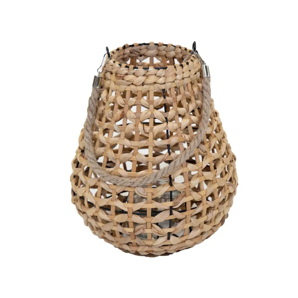 Handgefertigte Bast Laterne mit Teelichtglas Durchmesser 20 cm Höhe 23 cm — etoni