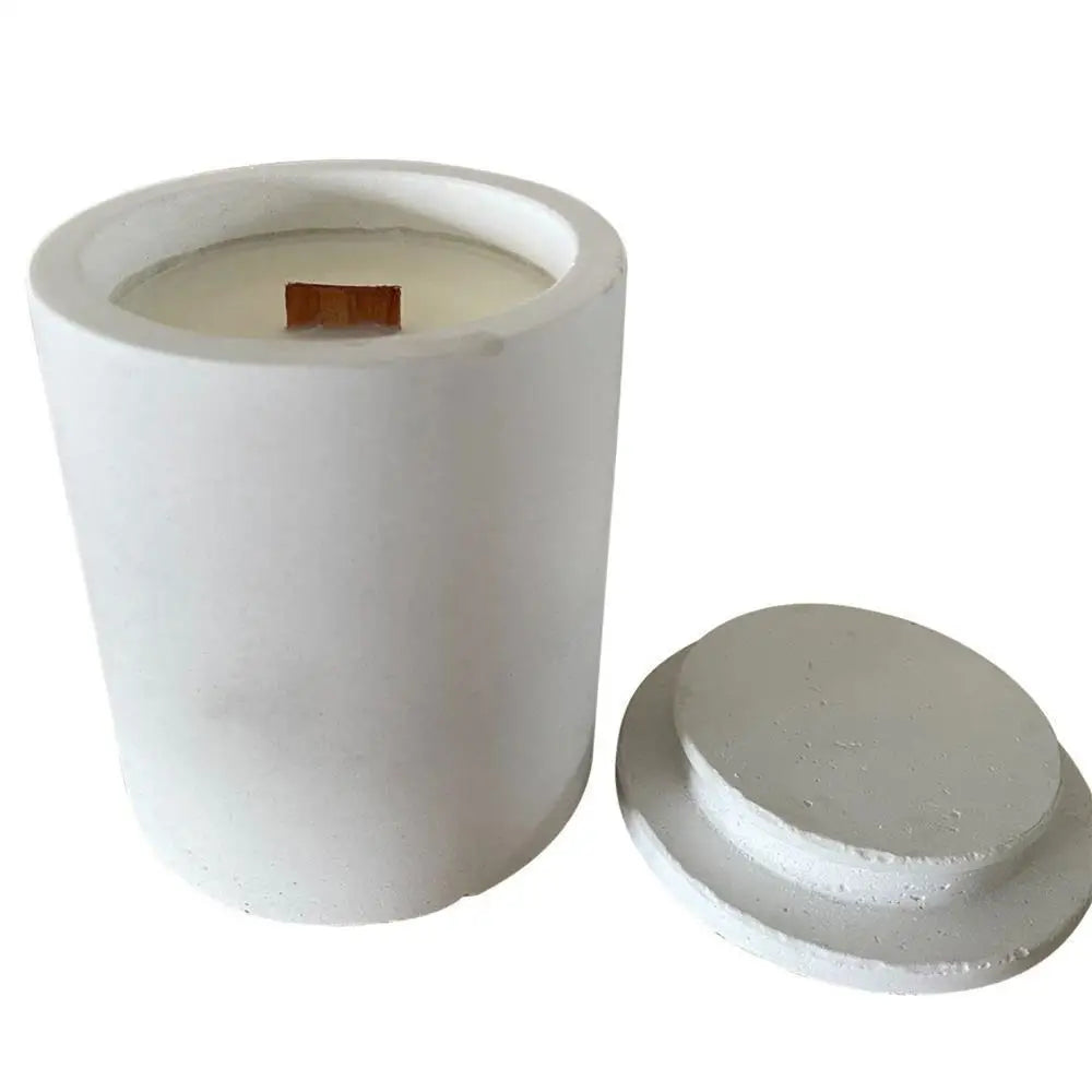 Reserviere Handgefertigte Betonkerze aus dem Ahrtal | 220ml Bio-Sojawachs-Duftkerze in rustikalem Design in Weiß für den nächsten Markt — schnell, kostenfrei, ohne Vorkasse.