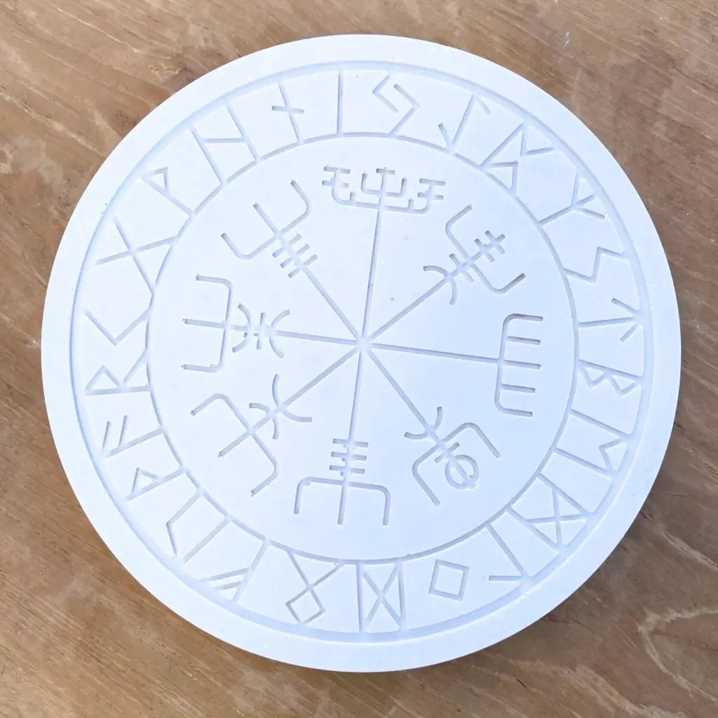 Eine **handgemachte Keramikplatte**, glasiert und mit dem **Vegvisir** verziert — dem isländischen Wegweiser, der jenen heimführt, die in Sturm und Dunkelheit unterwegs sind.